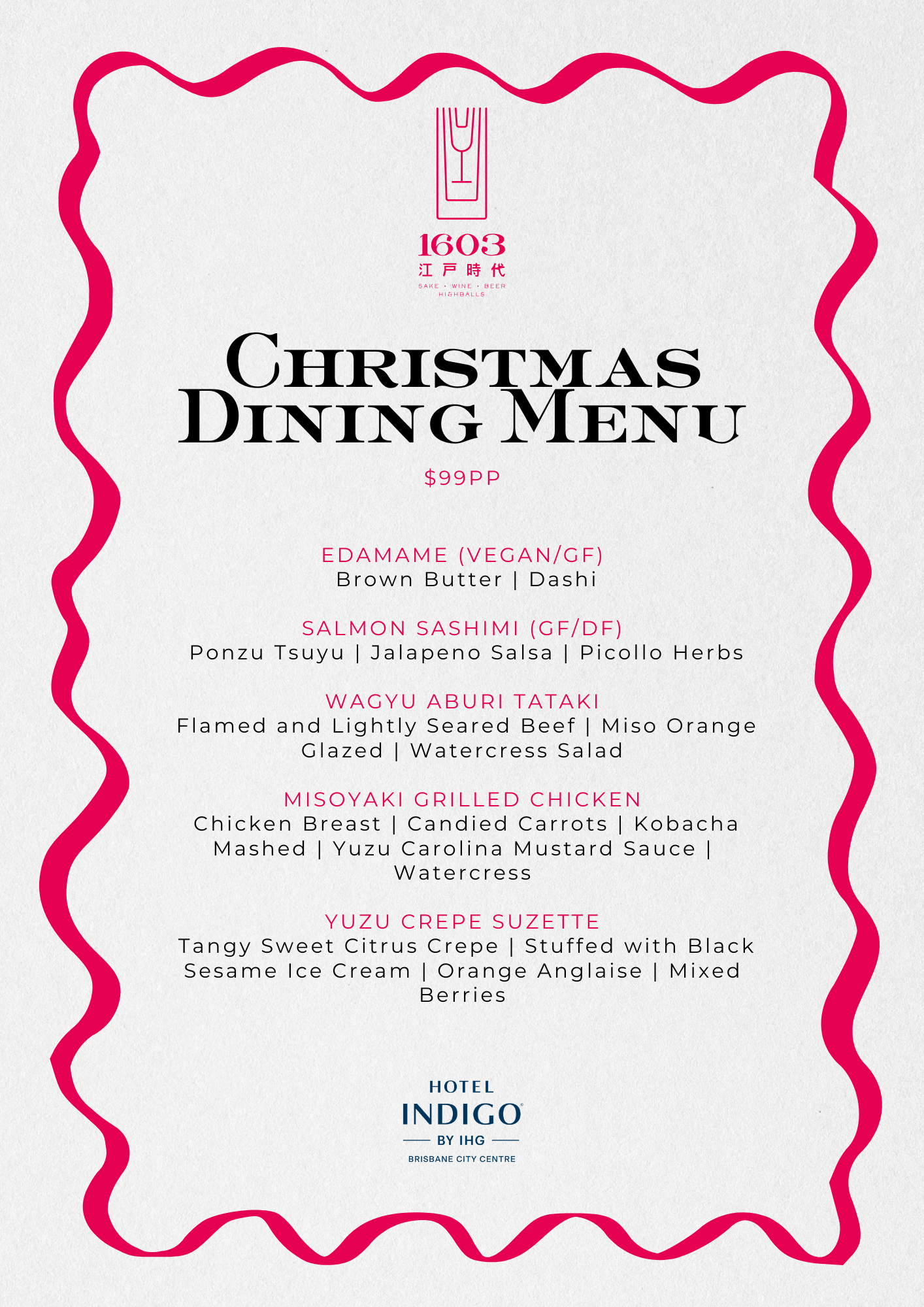 Celebrate Christmas in style at Bar 1603, Hotel Indigo Brisbane City Centre with a beautifully crafted Japanese-inspired set menu, designed to delight and surprise.